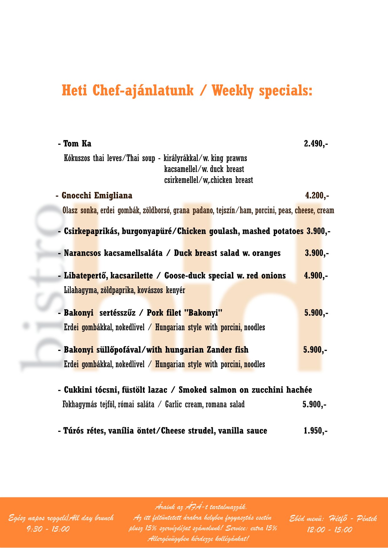 MENÜ ELVITELRE 3000,- ft-tól: Hétfő - Péntek 11:00 - 15:00